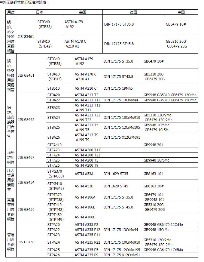 中國(guó)國(guó)標(biāo)和日標(biāo)、美標(biāo)、德標(biāo)無(wú)縫鋼管材質(zhì)牌號(hào)對(duì)照表